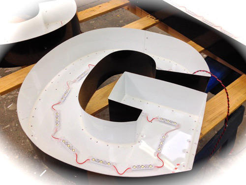 These channel letters reveal just why LED is a lot easier to work with than neon tubes.