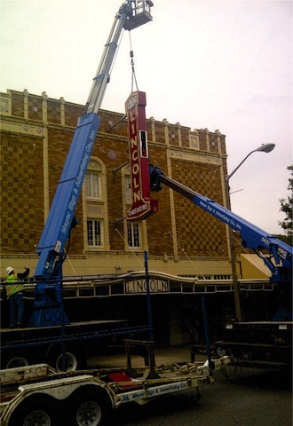 Ironically, Ken points out, high profile sign installations (such as the Xfinity Arena in Everett) are not necessarily the most high-end from a technical standpoint. An example of an installation that was both is the Lincoln Theater in Mount Vernon. “That was an interesting install because we were dealing with an old, old building, and it was a projecting sign…and a big one at that,” Ken recalls, “so there were a lot of things that had to take place inside the building structure-wise to hold the thing up. That was a little challenging.”