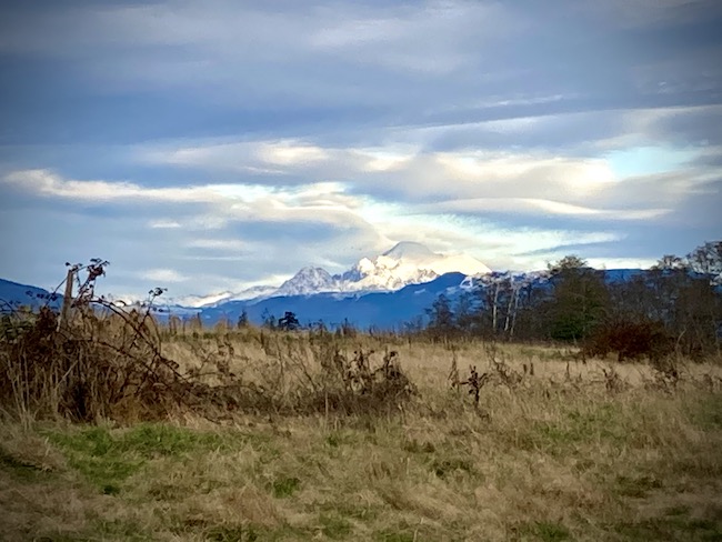 There are marvelous views of not only Padilla Bay from the Reserve, but also of Mount Baker to the north as you walk the Upland Trail through the former Breazeale dairy farm.