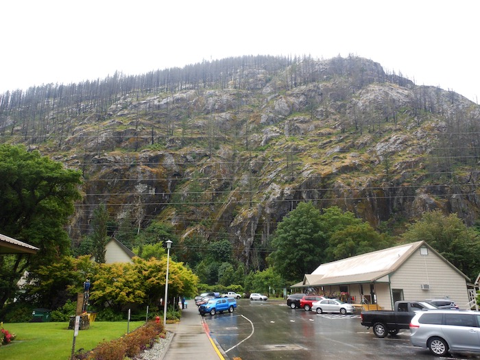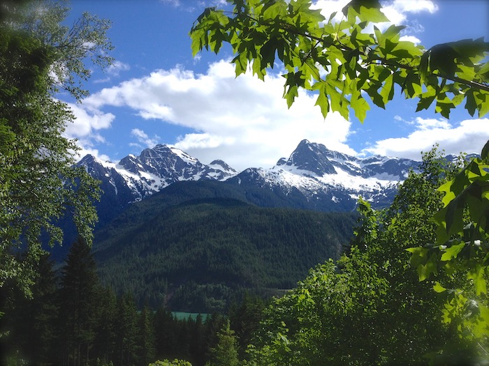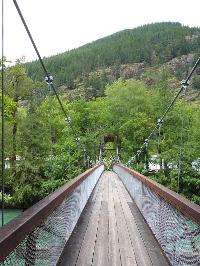 As a day trip, my wife and I approach a visit to Newhalem with a full but leisurely itinerary. We leave home right after breakfast and stop for a dirty spice chai at the Diedrich’s coffee kiosk in Burlington before taking Hwy. 20 to Sedro-Woolley and points northeast. It’s always a beautiful drive through the pioneer communities of Lyman and Hamilton and on to Concrete, where we’ll stop on our return trip for a sweet snack and espresso at 5-Bs Bakery, and take home a loaf or two of gluten-free bread and maybe something more savory to consume with a big salad that evening. Sauk Mountain looms ahead. Somewhere around Birdsview we get our first tantalizing peeks at the snow mantled Cascades. If you need to stretch en route, mile marker 100 makes for a great selfie with the river and mountains for a background.