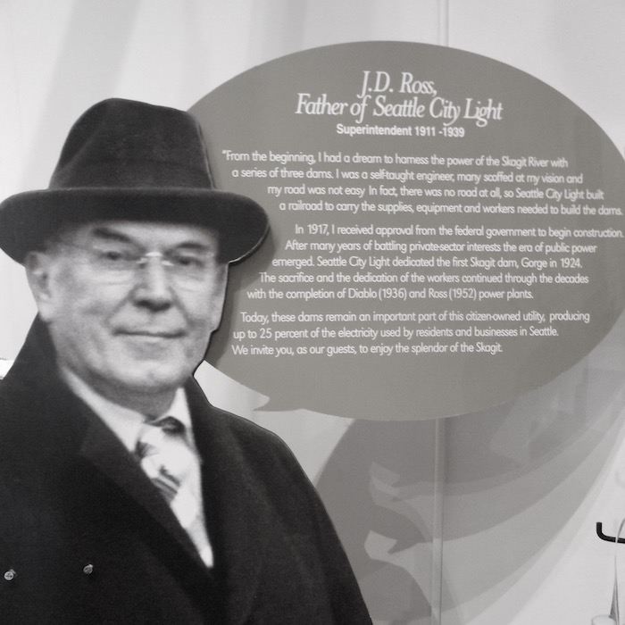 “From the beginning I had a dream to harness the power of the Skagit River with a series of three dams,” said Ross. “I was a self-taught engineer, many scoffed at my vision and my road was not easy. In fact, there was no road at all, so Seattle City Light built a railroad to carry the supplies, equipment and workers needed to build the dams.”