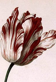 Which brings us to the poster child of tulipomania, the Semper Augustus, which has been described as an “intricately feathered red-and-white tulip,” one bulb of which changed hands for the exorbitant price of ten thousand guilders just before the crash — a sum that at the time would have bought one of the grandest canal houses in Amsterdam.
