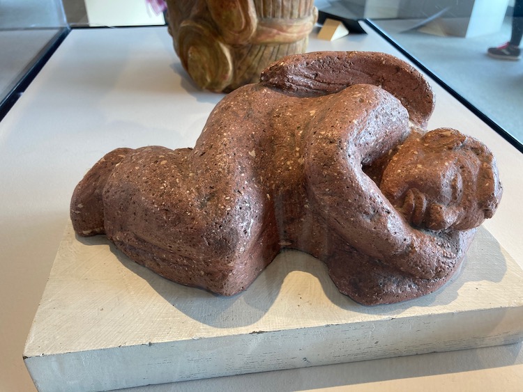 “He fell in love with the area the first time he saw it,” said Anita. “And although he worked long, hard hours on the farm, he always found time to paint and draw.” He painted his fellow workers, produced pastel drawings and paintings of his own family members and those commissioned by community members as well as works that drew on his memories of Texas and Mexico. He experimented in a number of media including stone, clay, gold leaf, and other materials. Often in lieu of more expensive art supplies he relied instead on materials at hand such as burlap.