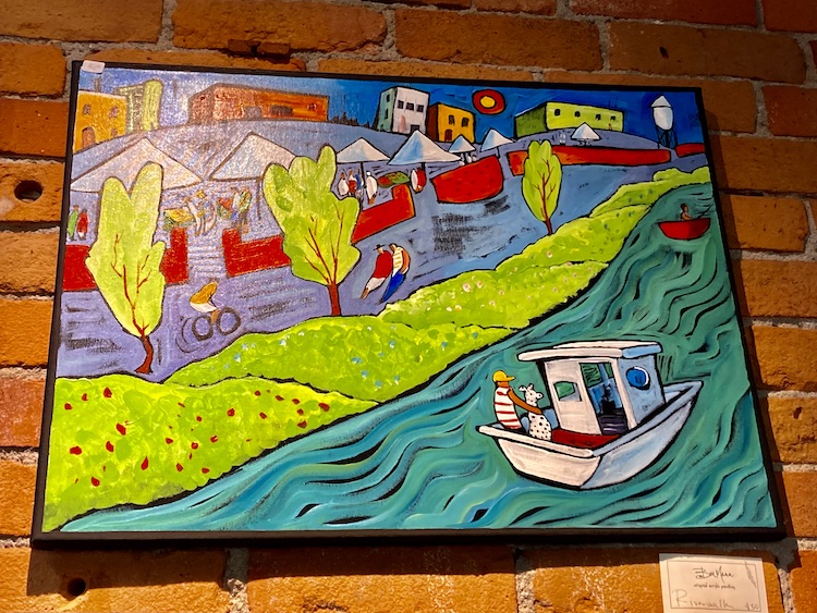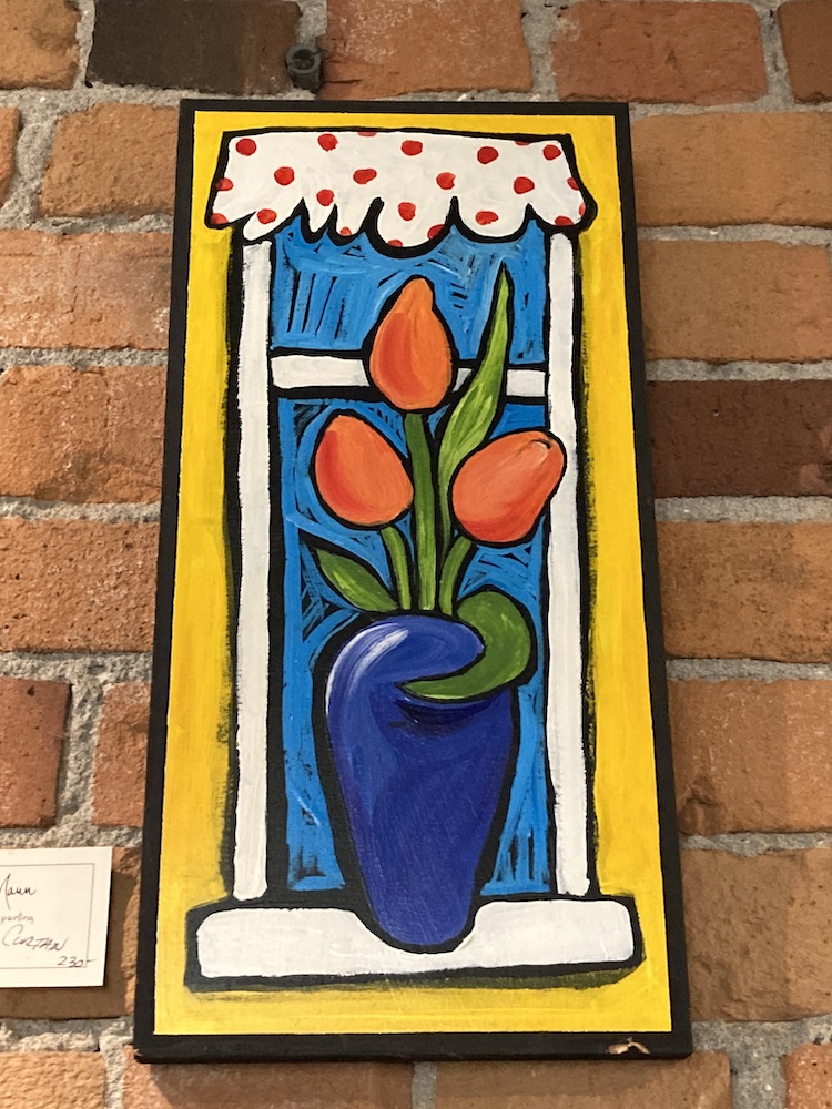With pandemic restrictions lifted, Sean and his crew still take precautions, but they feel like they have a lot of ground to make up — starting with the simple fact that their approach to making coffee was that it be immediately enjoyed hot and on site. “Our numbers fell by half during the pandemic,” Sean recalls, “we displayed fewer artists, and we weren’t able to do workshops, open mic night or wine tastings.” Now, however, there are more artists being featured, and popular events like “Wine and Water Color” (featuring a glass of wine and two hours of water color instruction from artist Margaret Horak) are back — with the artist present online. There is also paper art instruction on Thursdays, and Sean has inaugurated open mic nights on Saturdays from 6-8pm for students with poetry, comedy, or music to share, “They can plug into our PA system and we have two mics they can use,” says Sean.