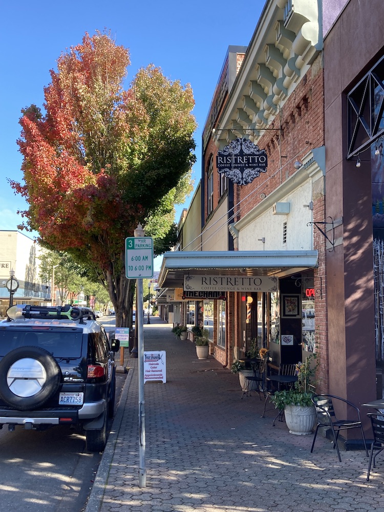 In the interest of full disclosure, I must confess that Ristretto is my happy place in downtown Mount Vernon. In fact, with all due respect for the many fine establishments that will pull you a mean crema shot or two (and I patronize a good number of them, believe me), when it comes to just kicking back and soaking in an urban coffee house vibe, Ristretto is my “go to”  — and its latte macchiato is hands down my favorite cup o’joe in the Magic Skagit. It’s the coffee they serve at break time to the blessed toilers of the Elysian Fields.