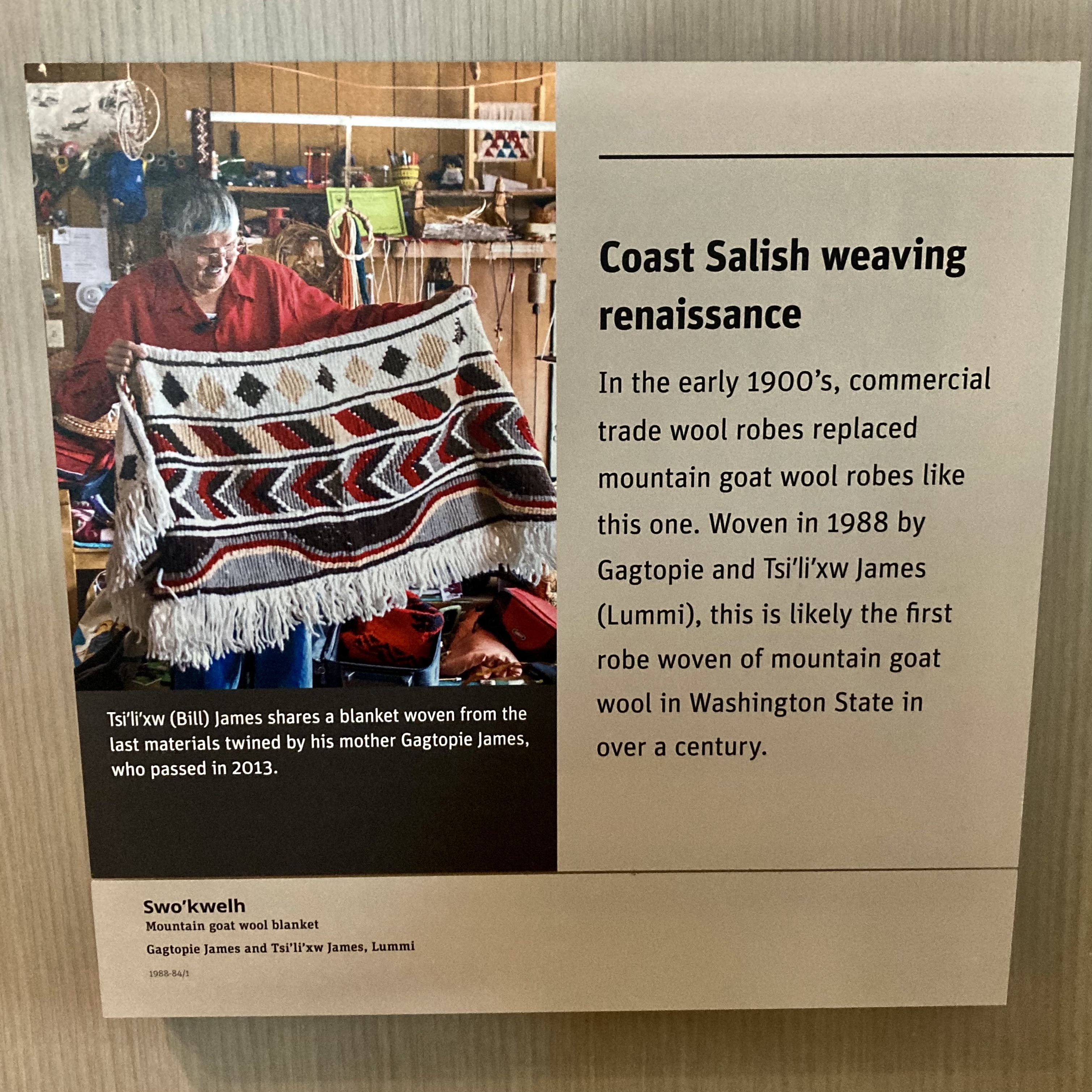 “To the Coastal Salish people, the blanket has always been an integral part of daily life. Often to pay off debts, to show gratitude, or to indicate status. A blanket is one of the most honored gifts to receive, not just because of the amount of time it takes to make, but also its ability to keep you in warmth and in health for the long winter.”