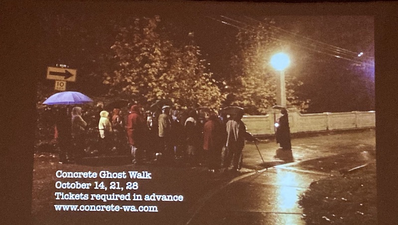 The inspiration behind the Concrete Ghost Walk was similar events that the Stafford’s had experienced in Atlanta, Georgia as well as other American towns. “Port Townsend has a ghost walk as well,” noted Val, “and many of them start out in a cemetery. When we came back to Concrete I wondered if it was haunted…so I started asking around.”