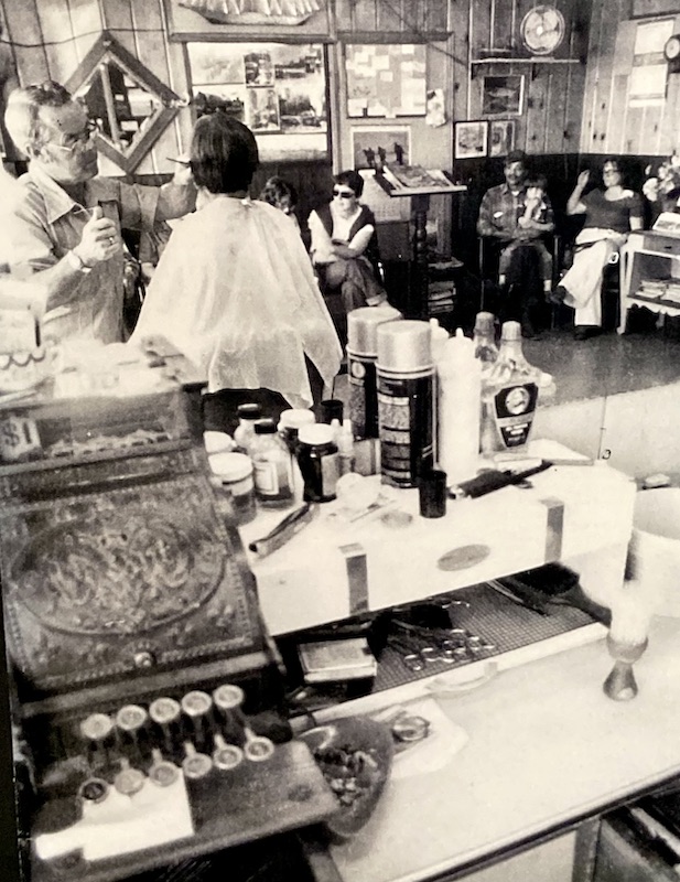 Interestingly, when I discussed this article and exhibit with my father, Mark White, I found out that he had gone to Fox’s Barbershop for a few years when he was younger. According to him, both Foxes, father and son, wore white waist-length jackets that reminded him of what doctors or dentists would wear. They would often discuss high school sports, farming, and fishing. My father also mentioned that the shop always smelled like cigarettes, powder, and aftershave. What he found the funniest was that both Foxes always had a toothpick in their mouth, and he enjoyed watching them whip it around with their lips.