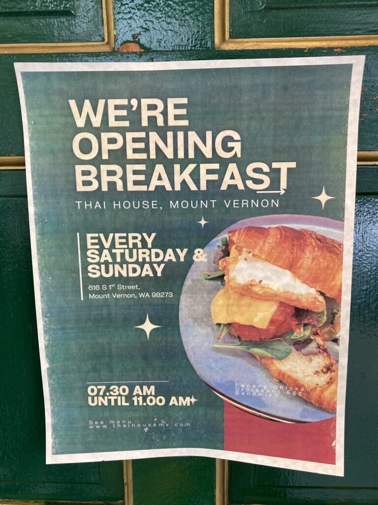 Although I plan to do a Tales of the Magic Skagit podcast interview with Jessie, she deserves a few words relative to this particular story. Jessie came to Mount Vernon from a career in high tech in Thailand with the goal of owning a Thai restaurant. Take a moment to ponder the gutsiness of that move: leaving your country of birth to come to another country that speaks another language to purchase and operate one of the riskiest business ventures one can imagine. I’ve had enough friends in the restaurant business to know that it’s not a career for the faint of heart. Jessie has been here for about a decade now, and I recently earned that she is opening a new restaurant in…wait for it…Georgia. Like I said, gutsy.