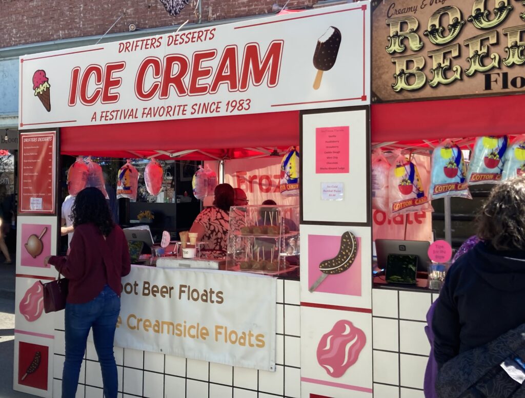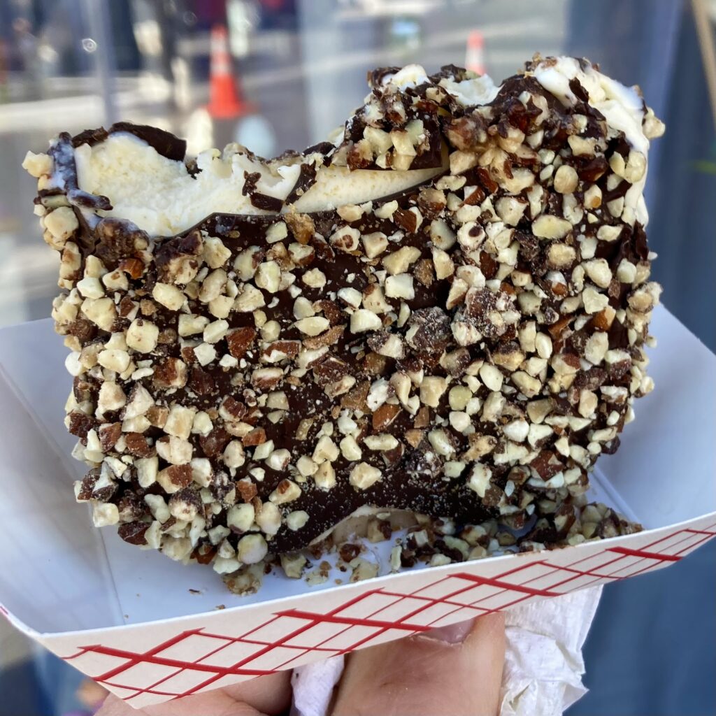 I’d probably be quite content if the good folks at the Drifters Desserts stand just handed me their vanilla ice cream on a stick, but that’s not what they do. Oh, no. They take that stick of tasty frozen confection and, right before your reverent gaze, dip it into a vat of next level melted dark chocolate straight out of a Dove bar fever dream.